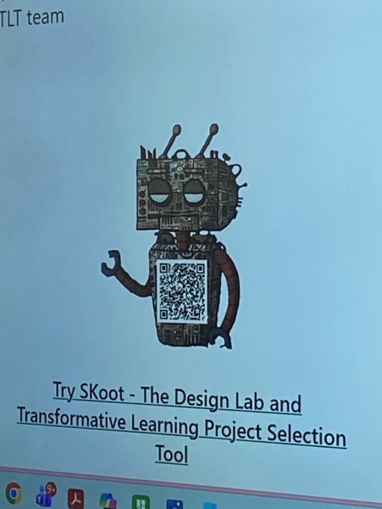 The purpose of the design lab education in the classrooms is the teach students and teachers that using technology as a part of your learning is not as difficult as it may seem, it is so interactive, and the students tend to love it! Here is the robot SKoot created by the design lab, I will also hyperlink the website HERE!
